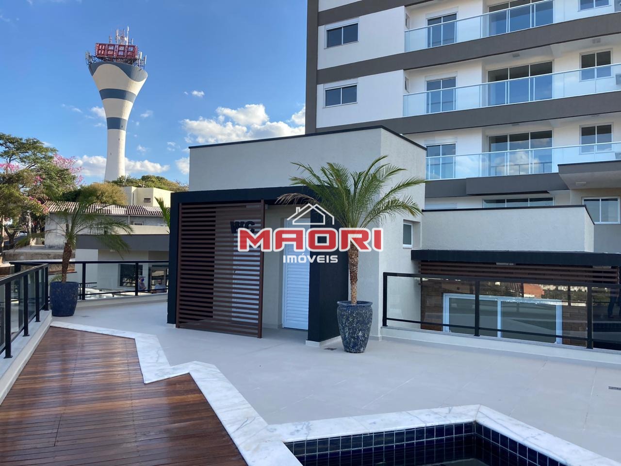 Condomínio com salão de festas, espaço gourmet com churrasqueira, piscina e academia.