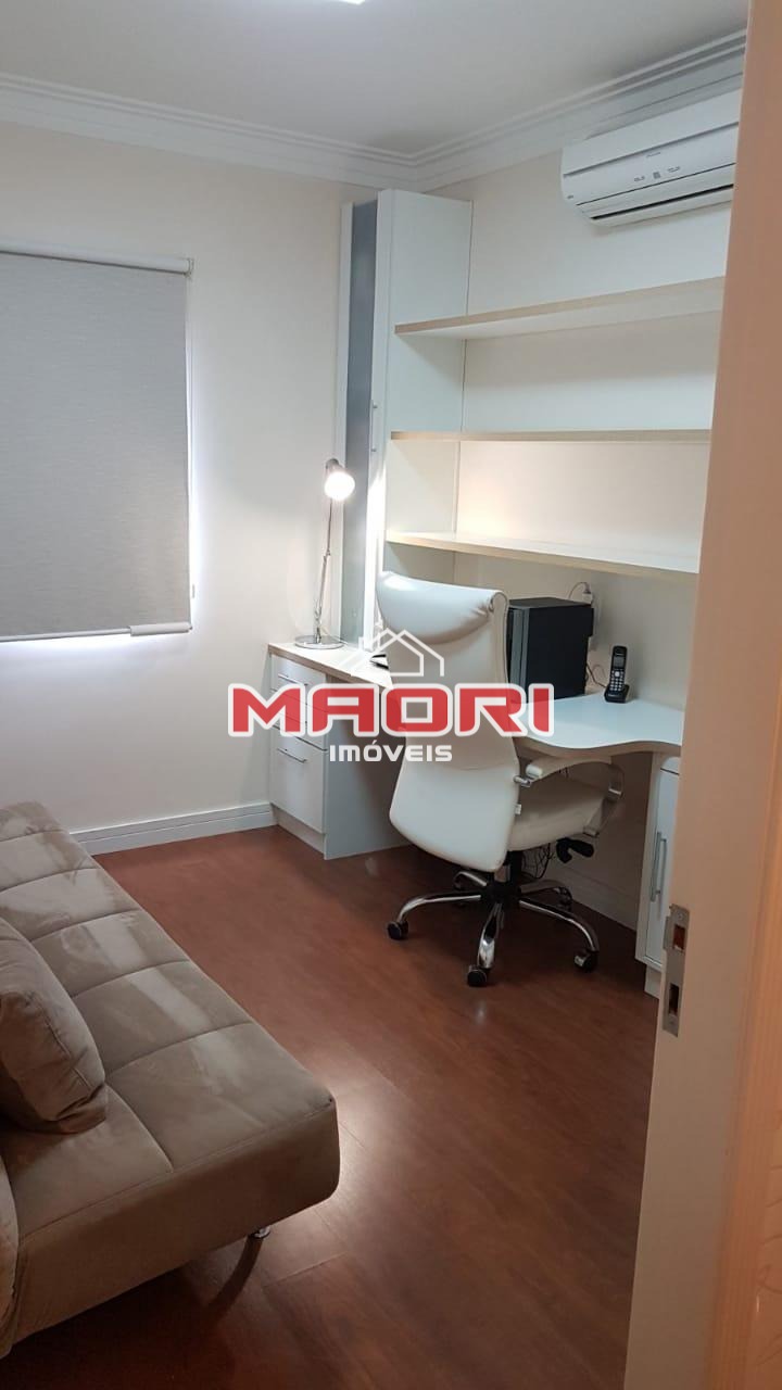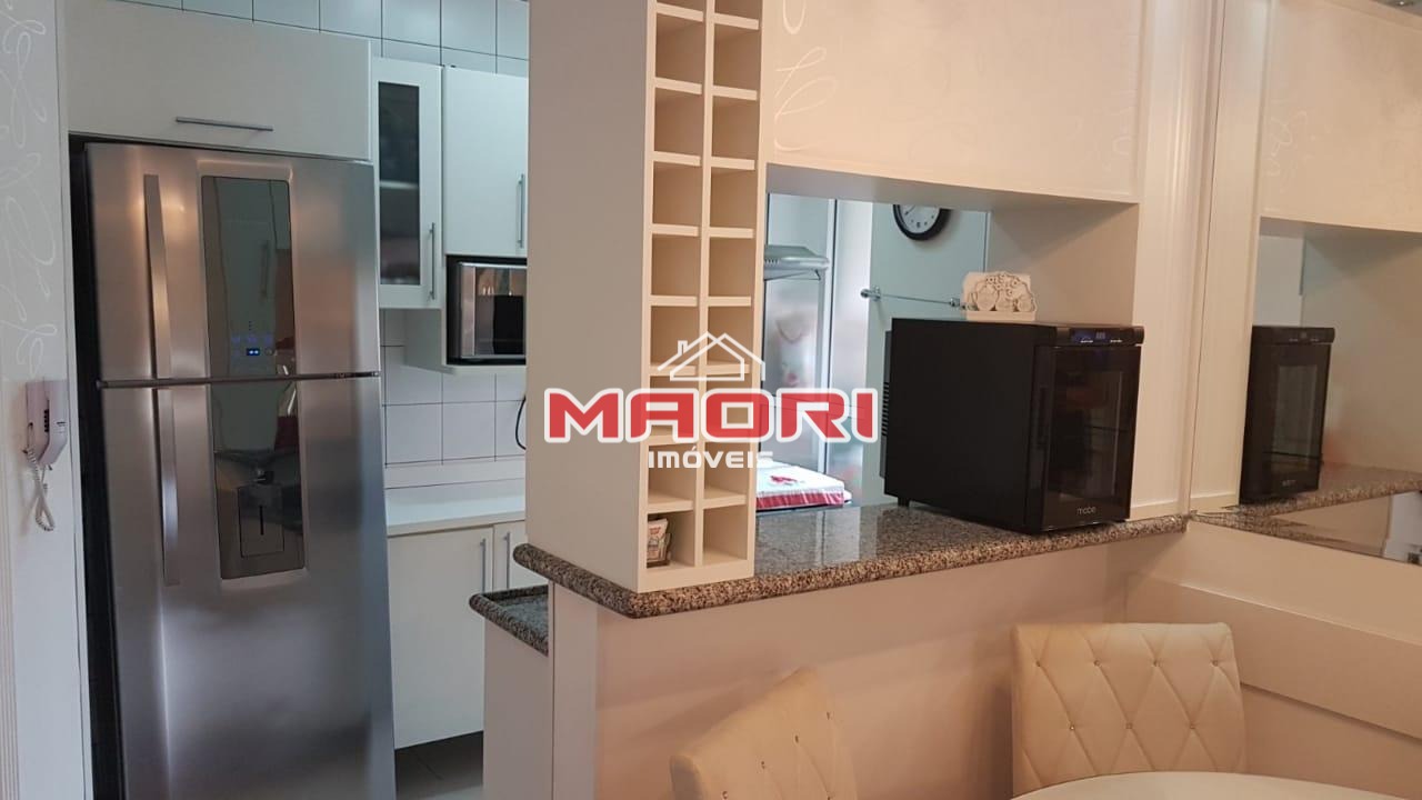 Possui 3 quartos com armários planejados, sendo 1 suíte planejada, possui ar condicionado, banheiro social com box, espelho e armários, sala de estar com painel de TV, sacada/varanda, sala de jantar, cozinha planejada com armários, lavanderia com divisória, 2 vagas de garagem descobertas.
