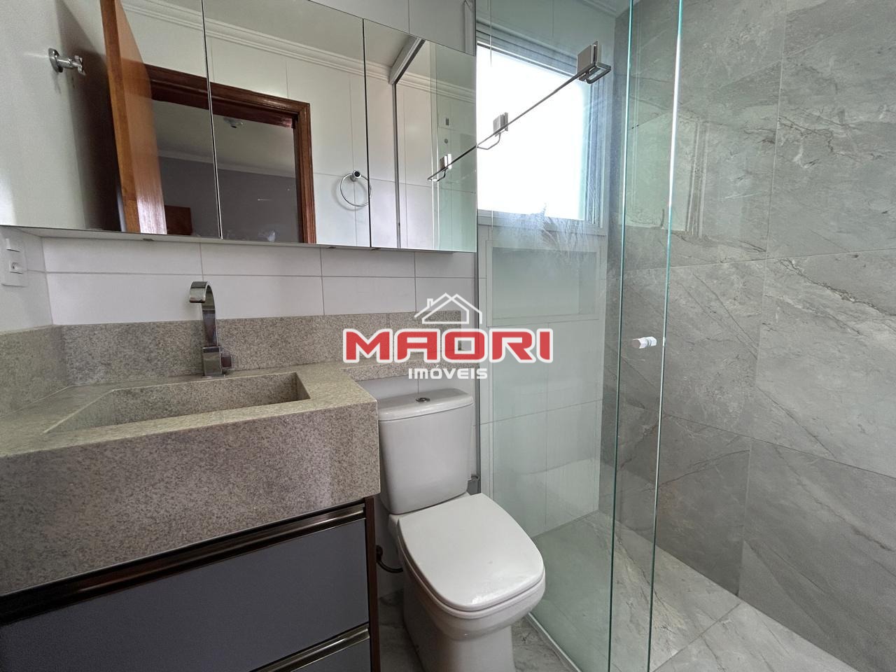 Possui 3 quartos, sendo 1 suíte, banheiro social, sala de estar com painel de TV, sala de jantar, sala estendida com fechamento em vidro na sacada, cozinha com armários embutidos, lavanderia, despensa e 3 vagas de garagem sendo 1 descoberta e 2 descobertas estilo gaveta.