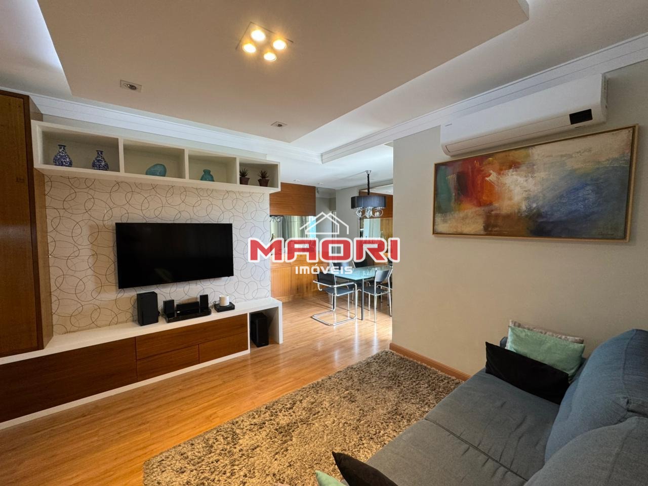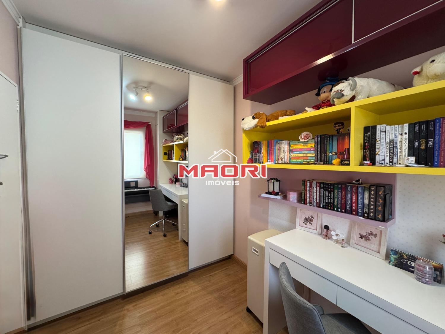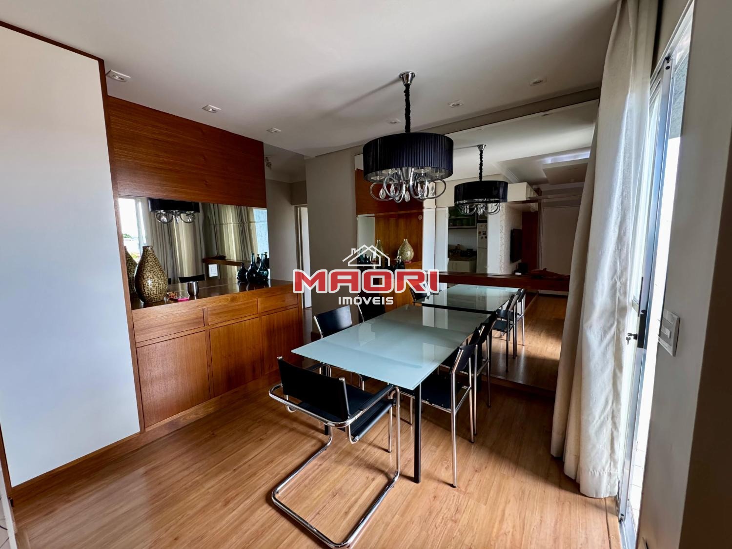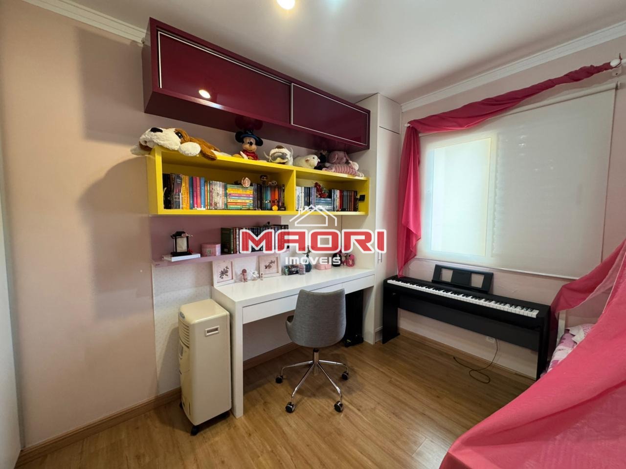 Possui 3 quartos com armários planejados, sendo 1 suíte com sacada, banheiro social, sala de estar com painel de TV e espaço para escritório, sala de jantar, cozinha com armários planejados, lavanderia e 2 vagas de garagem descobertas.
