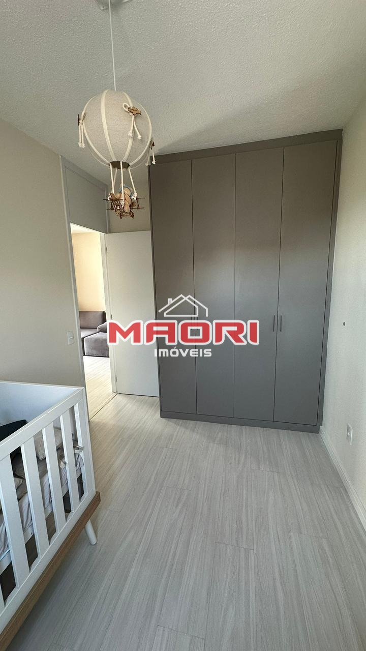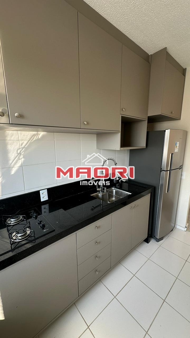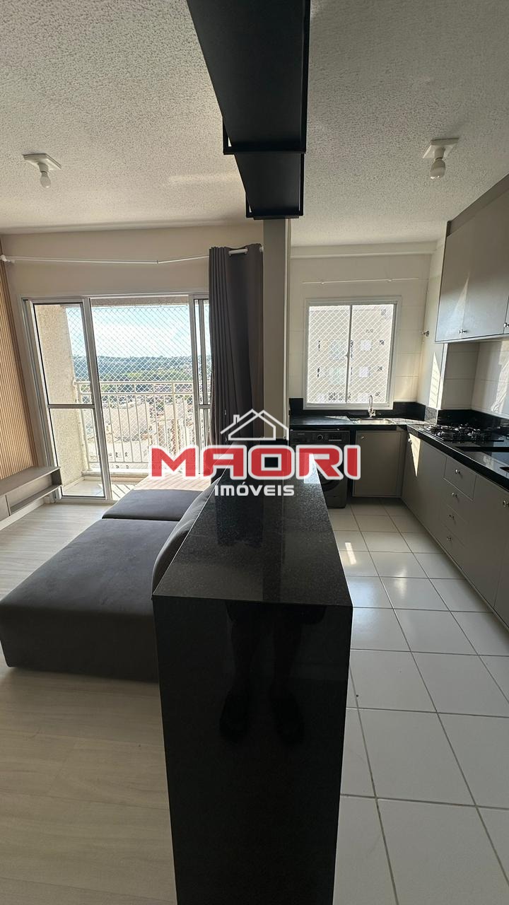 Possui 2 quartos, sendo 1 suíte, banheiro social com box e armários, sala de estar com painel de TV, sala de jantar, sacada, cozinha americana planejada, lavanderia e 1 vaga de garagem descoberta.