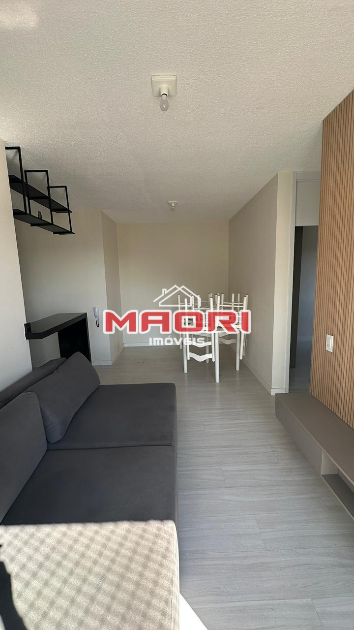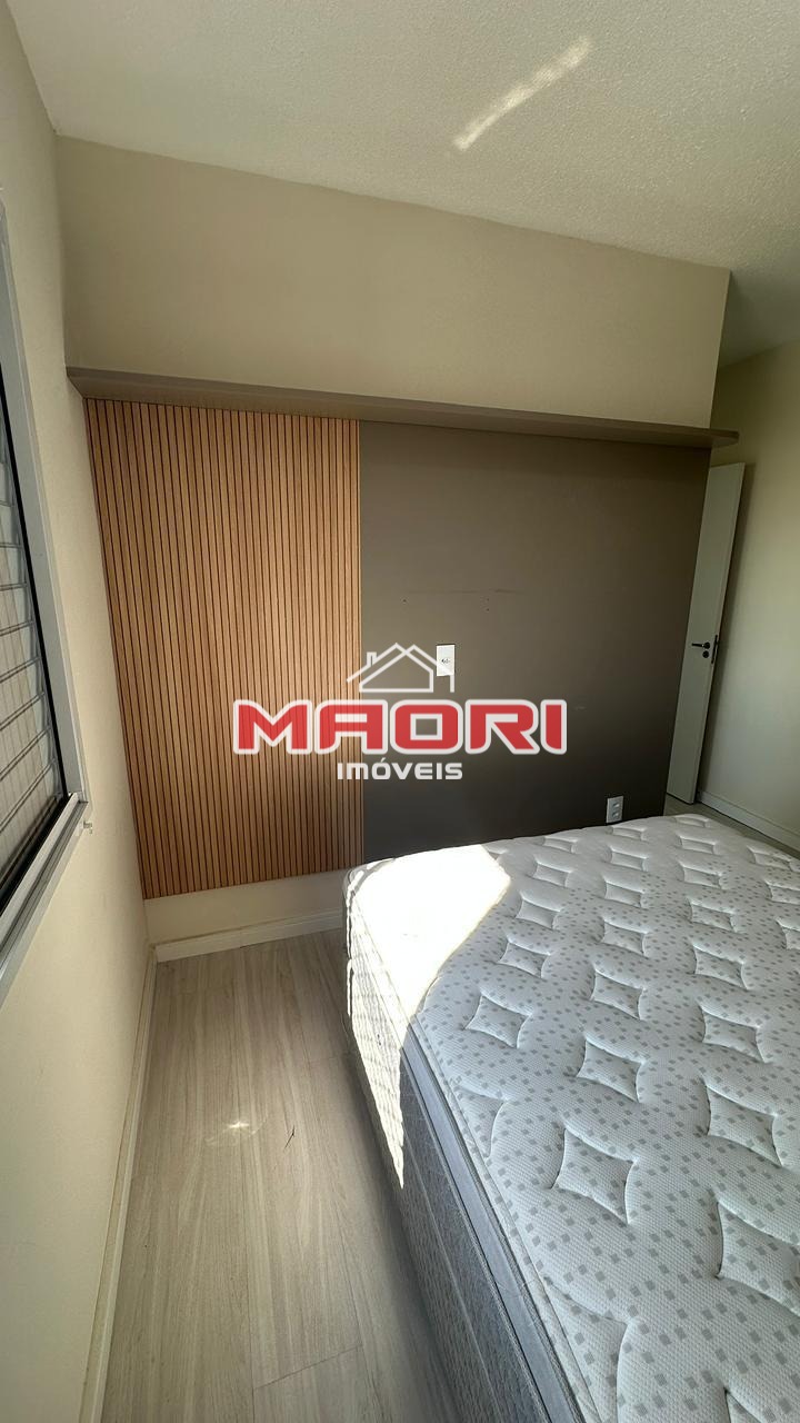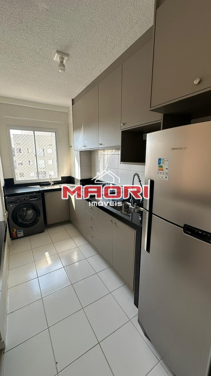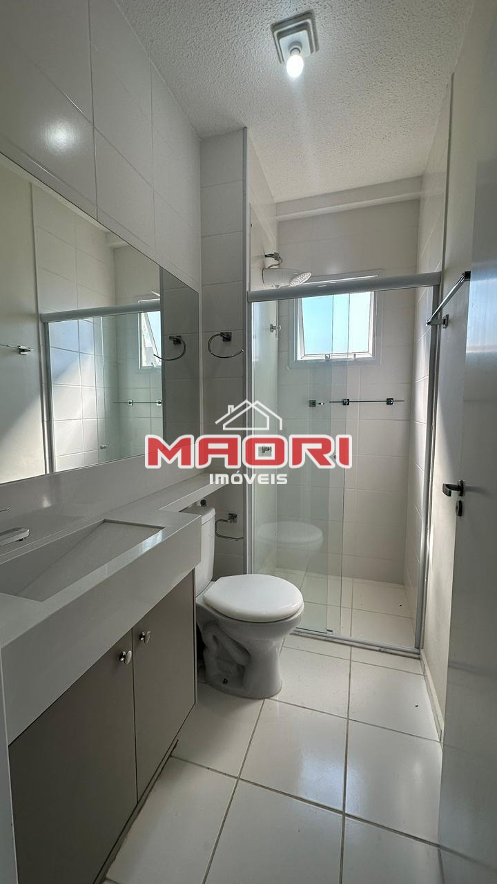 Possui 2 quartos, sendo 1 suíte, banheiro social com box e armários, sala de estar com painel de TV, sala de jantar, sacada, cozinha americana planejada, lavanderia e 1 vaga de garagem descoberta.