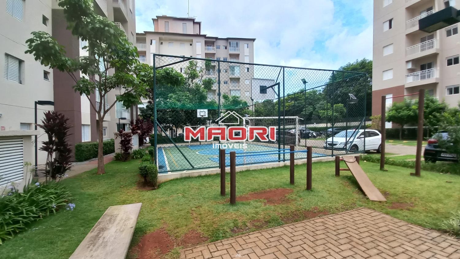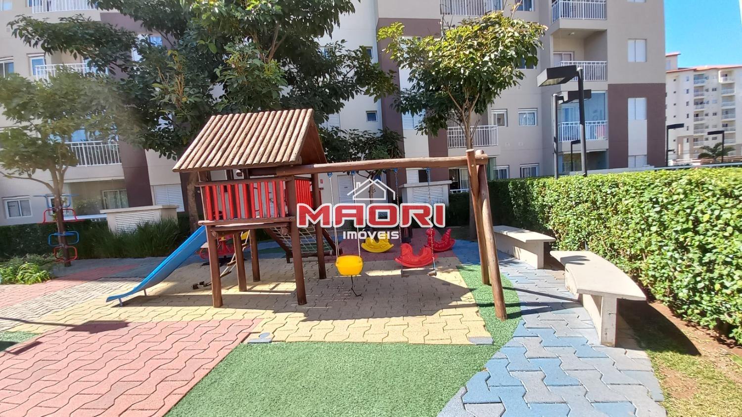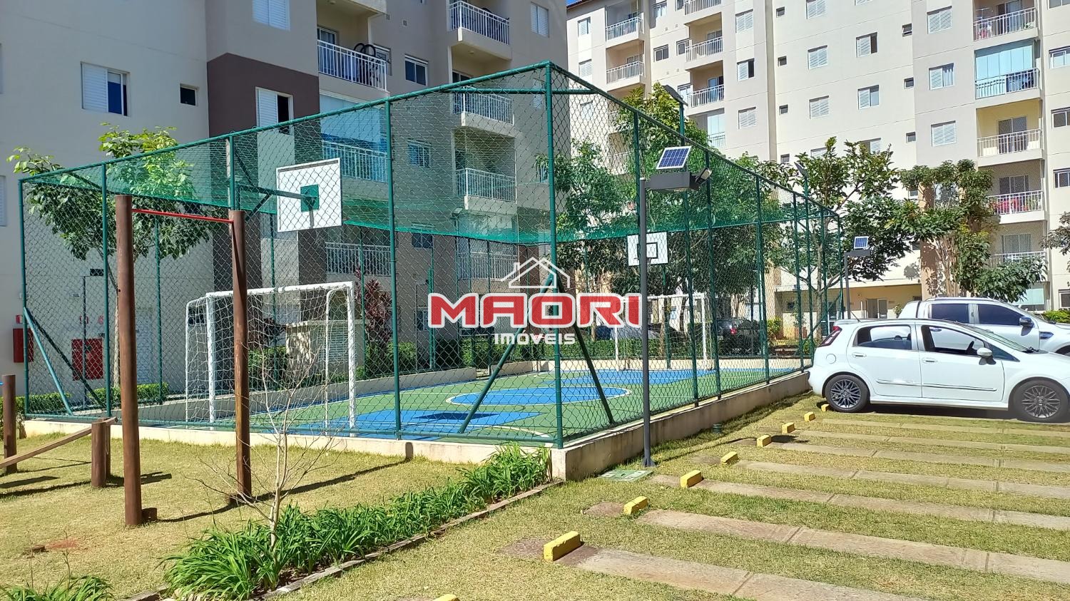 Condomínio com salão de festas, churrasqueira, piscina, playground, quadra poliesportiva e portaria 24 horas.
