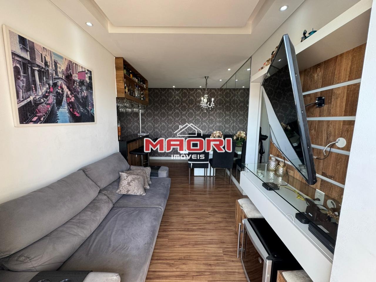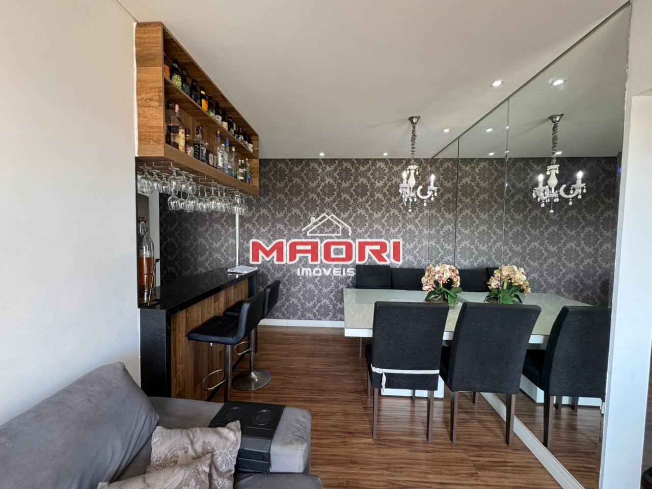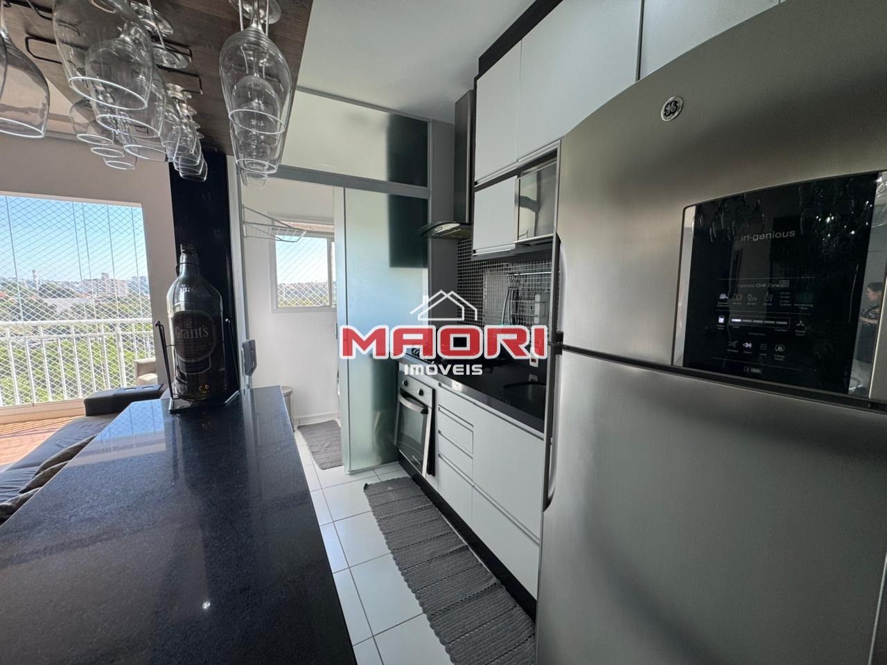 Possui 2 quartos, sendo 1 com armários planejados, banheiro social com box e armários, sala de estar com painel de TV, sala de jantar, varanda/sacada com fechamento de vidro, cozinha com armários, lavanderia e 1 vaga de garagem descoberta.