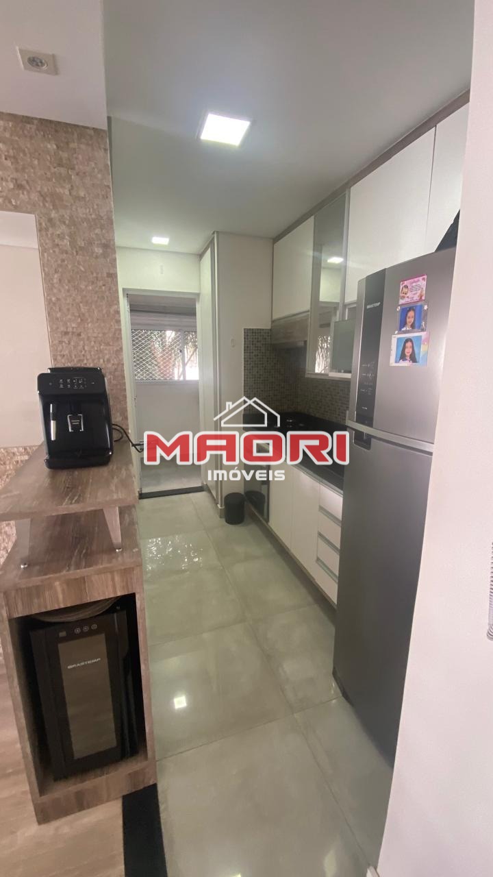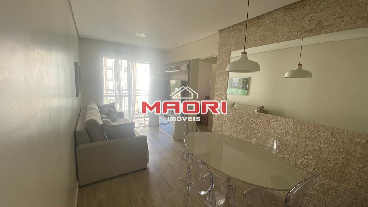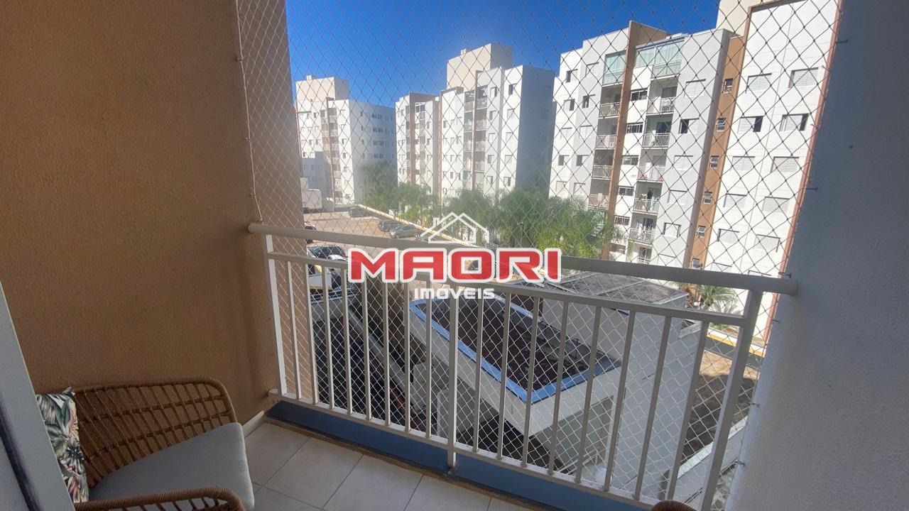 Possui 2 quartos, sala de estar com painel de TV, sala de jantar, sacada/varanda, cozinha com armários, lavanderia e 2 vagas cobertas.