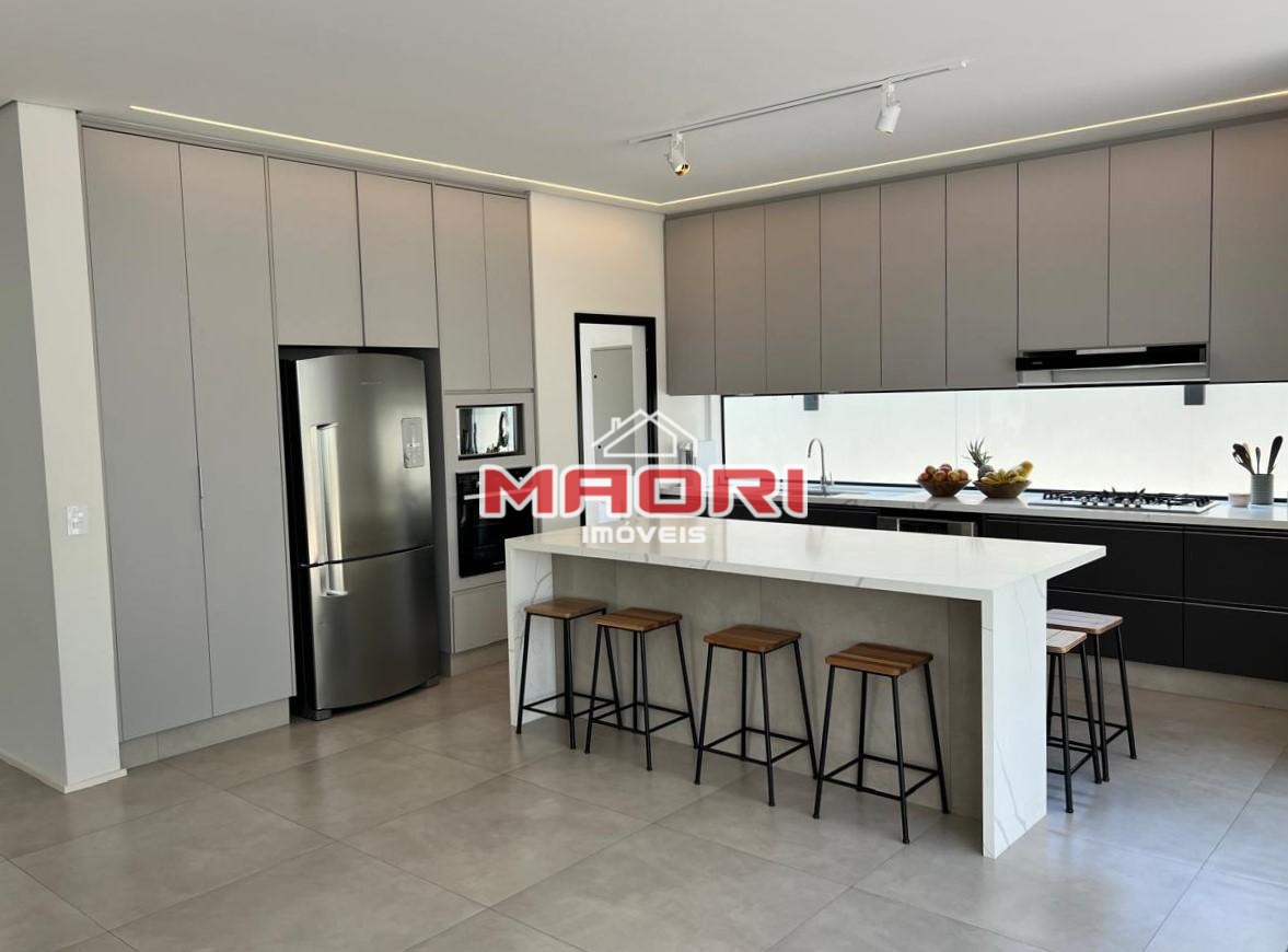 Possui 4 quartos, sendo 4 suítes, escritório, lavabo, sala de estar, sala de TV, sala de jantar, cozinha americana, lavanderia, banheiro social, depósito, espaço gourmet com churrasqueira, quintal, deck e piscina. A casa possui 4 vagas de garagem, sendo 2 cobertas.