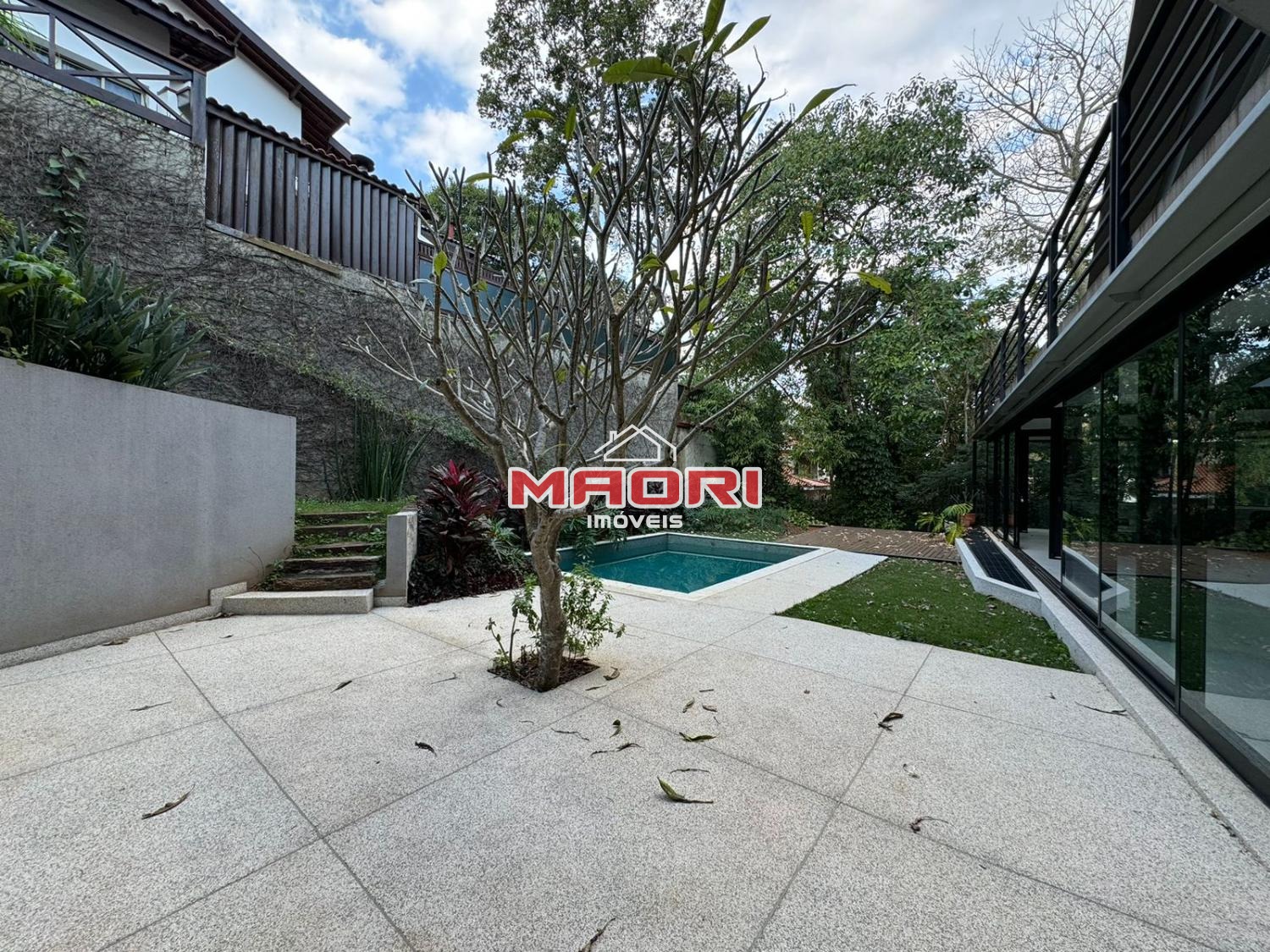 Possui 3 suítes com armários embutidos, sendo 2 suítes com closet e a suíte do casal com cortina automatizada, sala de estar, sala de jantar ampla, cozinha americana com armários embutidos, lavanderia, lavabo, belíssimo quintal rodeado por muita área verde, piscina, sala de TV com fechamento em vidro, vista para mata e com banheiro social.