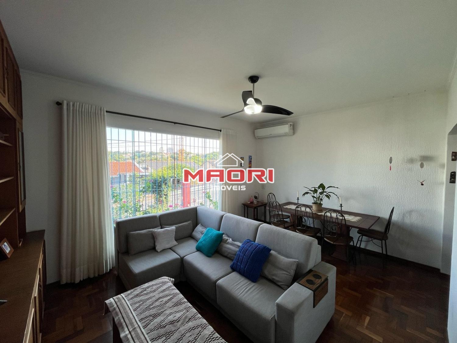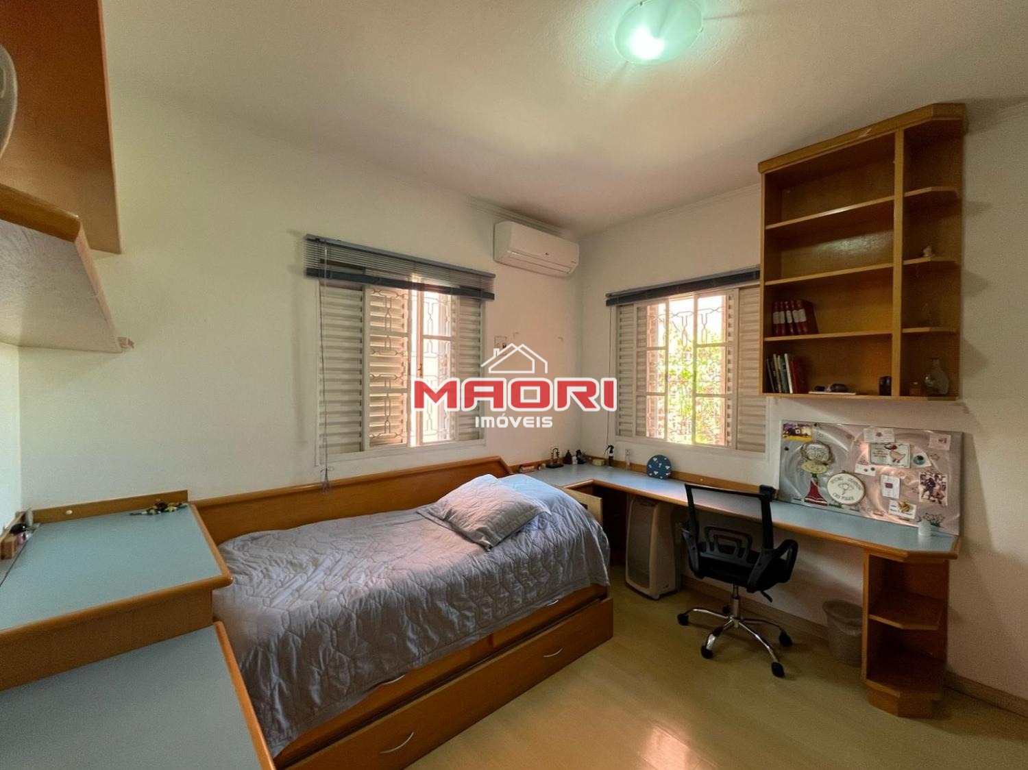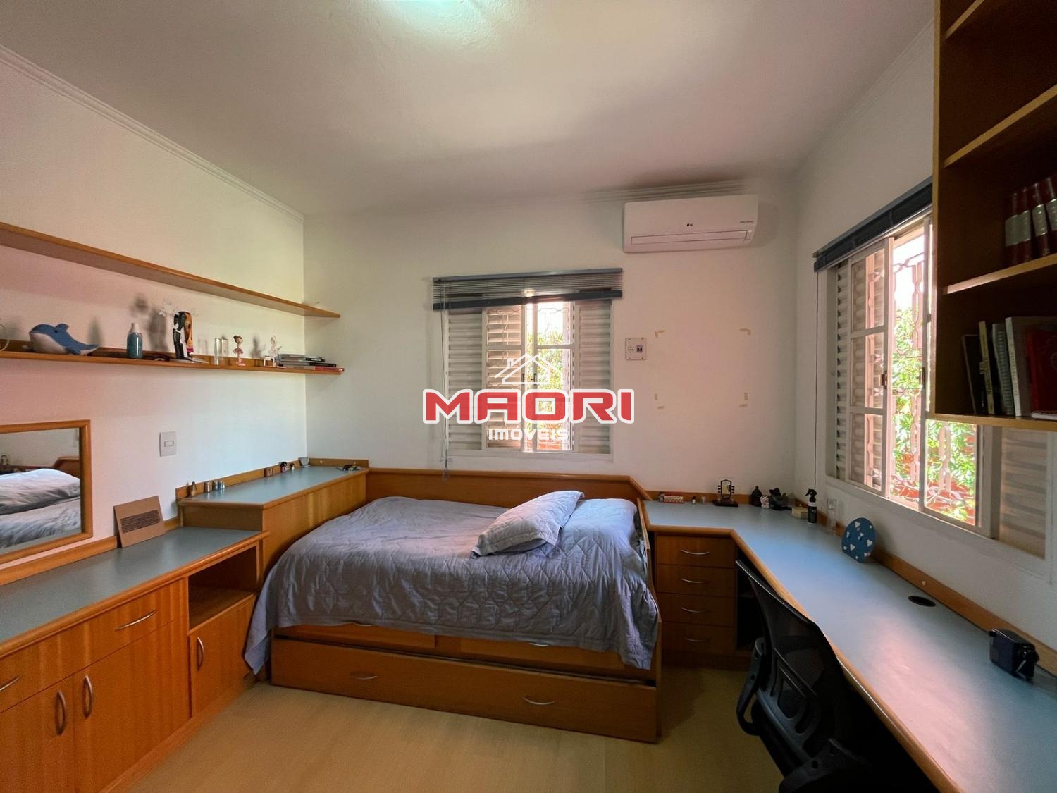 Possui 3 quartos com armários planejados e ventilador de teto, 2 deles com ar condicionado e 1 suíte, escritório, banheiro social, sala de estar com painel de TV, sala de jantar com armários planejados e ar condicionado, cozinha com armários embutidos, lavanderia com armários, quintal, jardim e 2 vagas de garagem, sendo 1 coberta.