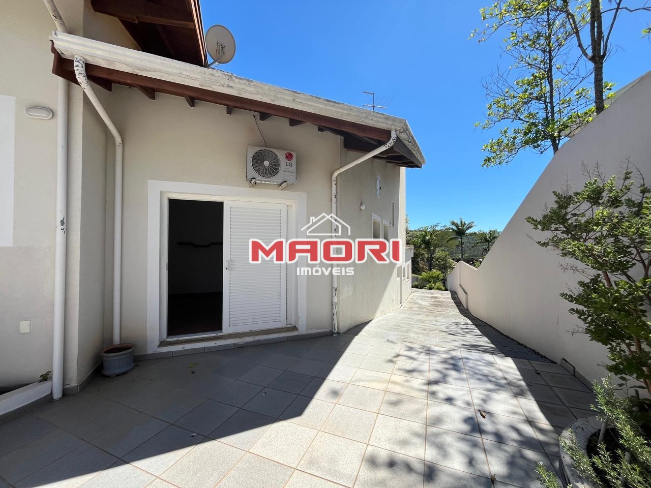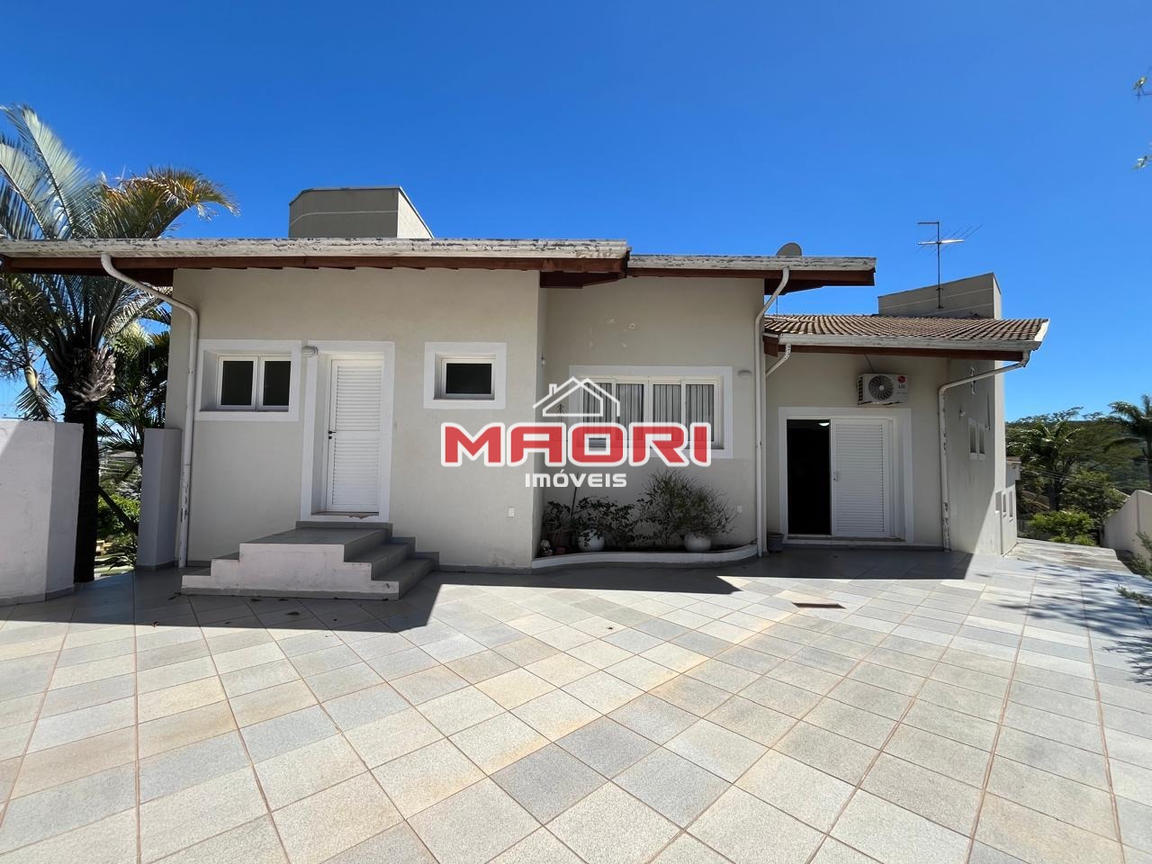 Possui 3 quartos, sendo 2 suítes (1 suíte máster com closet e hidromassagem), sala de estar com lareira, ar condicionado, sala de jantar, sala de TV, escritório, lavabo, cozinha com armários embutidos, despensa, lavanderia, quintal amplo, jardim e 6 vagas de garagem sendo 2 cobertas.
