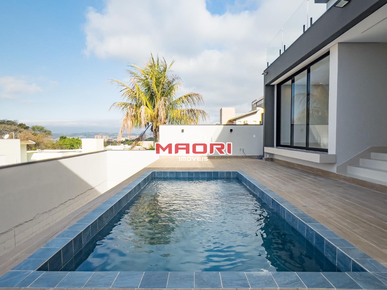 Possui 3 suítes com sacadas/varandas, sendo 1 suíte com closet e banheira, sala de estar com pé direito alto, sala de jantar, sala de TV, escritório com opcional para suíte no térreo, lavabo, cozinha americana com armários, despensa, lavanderia, espaço gourmet com churrasqueira, banheiro externo, quintal, piscina e 4 vagas de garagem sendo 2 cobertas.