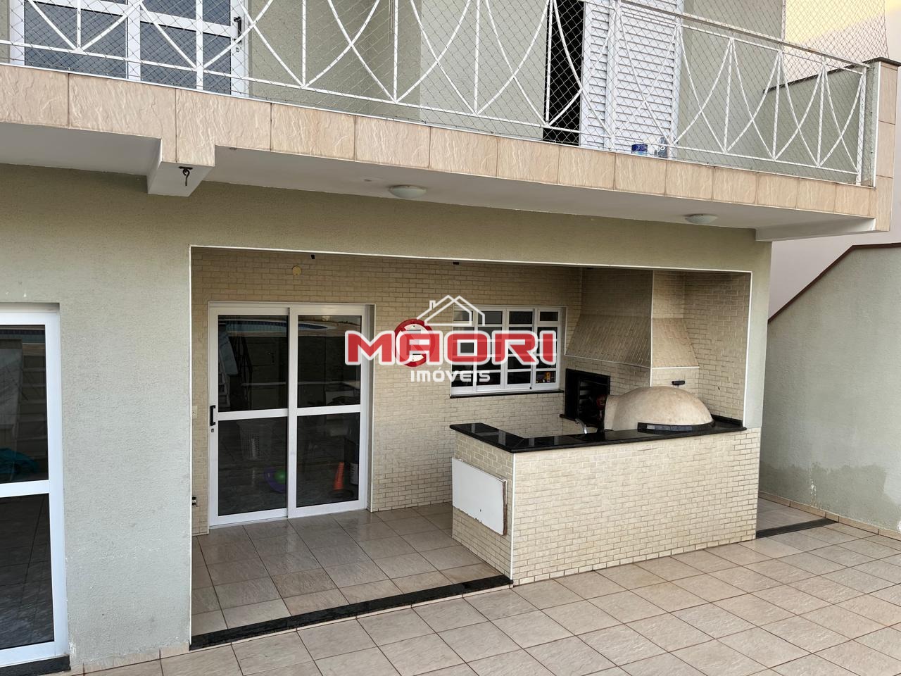 Sobrado com 3 quartos, sendo 1 suíte com closet, banheira de hidromassagem e varanda/sacada, banheiro social, sala de TV, sala de estar e sala de jantar, lavabo, cozinha integrada, lavanderia, espaço gourmet com churrasqueira, quintal, sauna, banheiro externo, piscina e 4 vagas de garagem, sendo 2 cobertas.