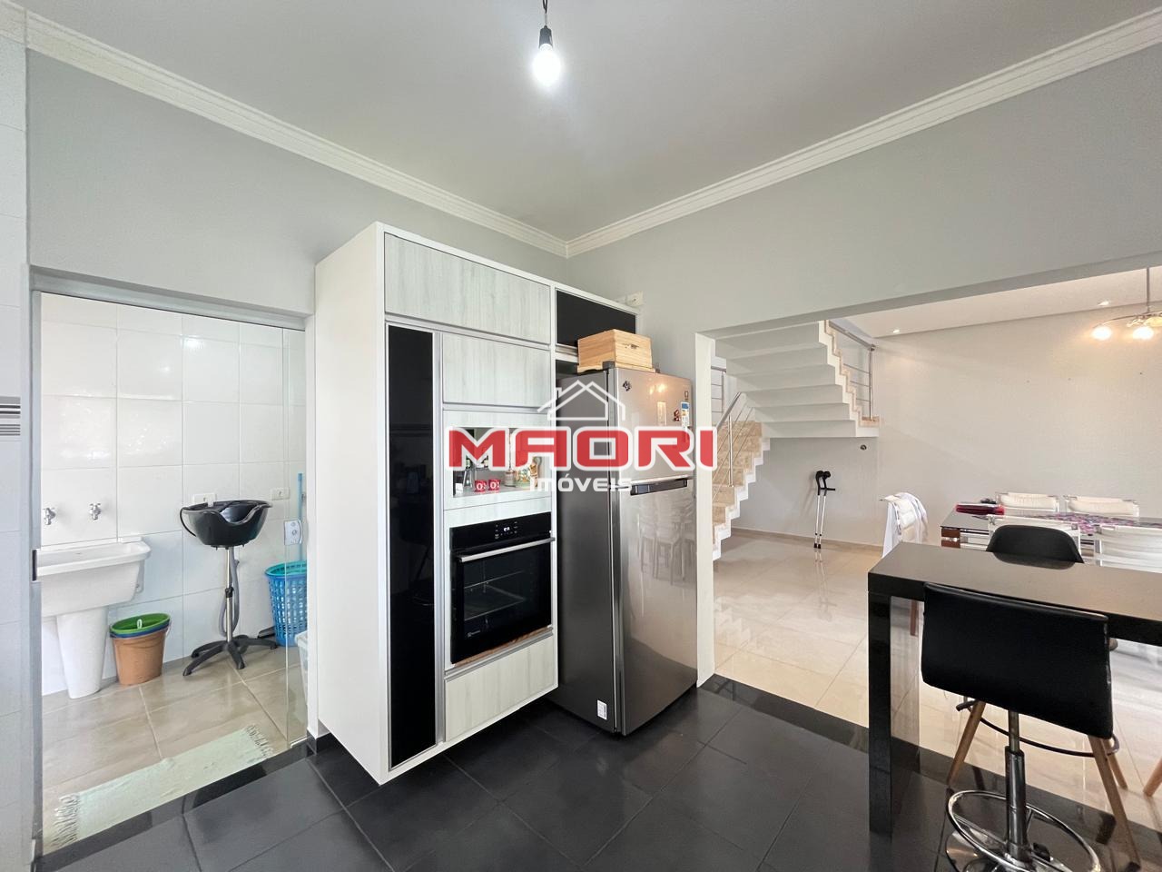 Sobrado com 3 quartos sendo 1 suíte com closet, varanda/ sacada, 2 banheiros sociais, escritório, sala de jantar, sala de estar com painel de TV, cozinha com armários, lavanderia, espaço gourmet com churrasqueira, amplo quintal gramado e 4 vagas de garagem.