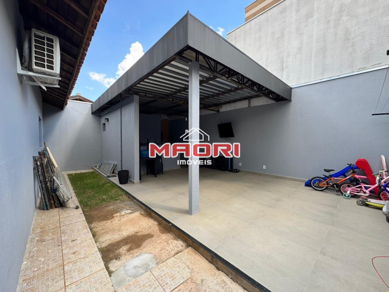 Casa térrea, possui 3 quartos com armários, sendo 1 suíte, banheiro social todo repaginado, roupeiro no corredor, sala de estar com painel de TV, sala de jantar, área de luz, cozinha com armários, lavanderia, quintal, espaço gourmet com churrasqueira, banheiro externo e 2 vagas de garagem cobertas.