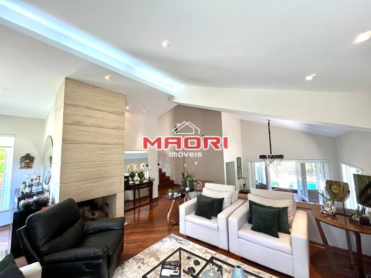 Sala de estar com lareira, sala de jantar, sala de TV, escritório, lavabo, cozinha com armários planejados, copa, despensa, lavanderia, espaço gourmet com churrasqueira e forno à lenha, quintal com lindíssimo paisagismo, piscina e 6 vagas de garagem sendo 3 cobertas.