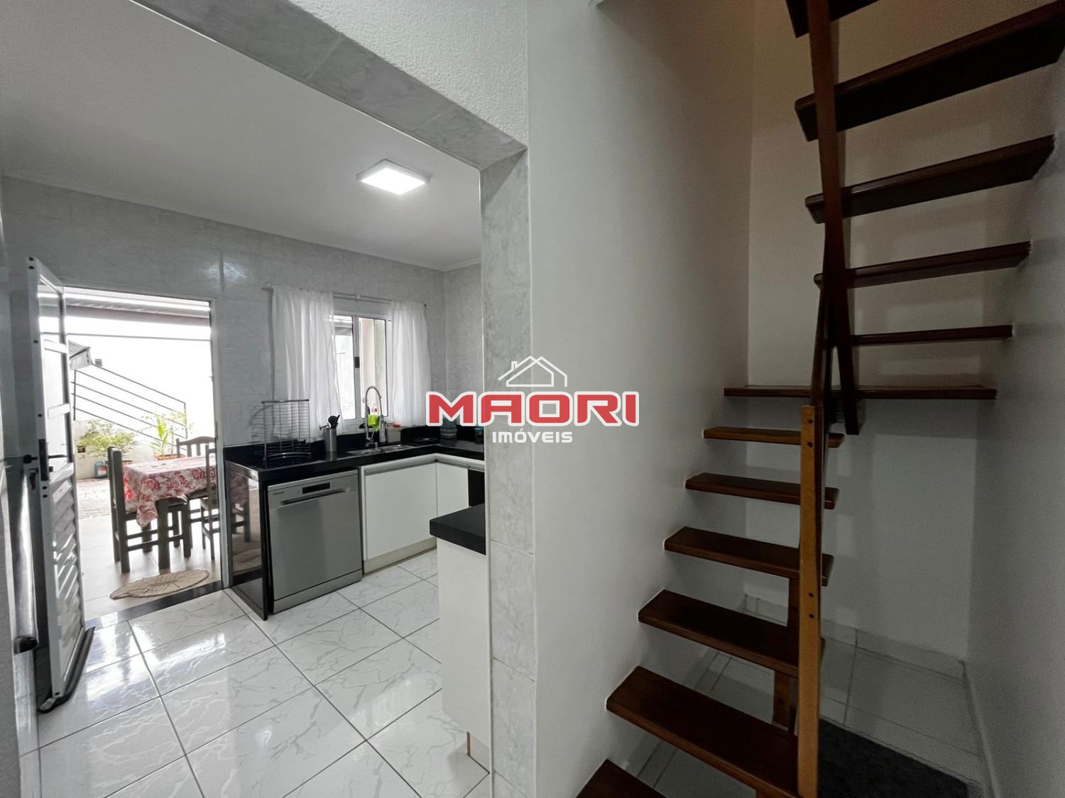 No pavimento inferior conta com cozinha toda planejada, integrada à sala de jantar, lavanderia, banheiro social, espaço gourmet com churrasqueira e quintal.