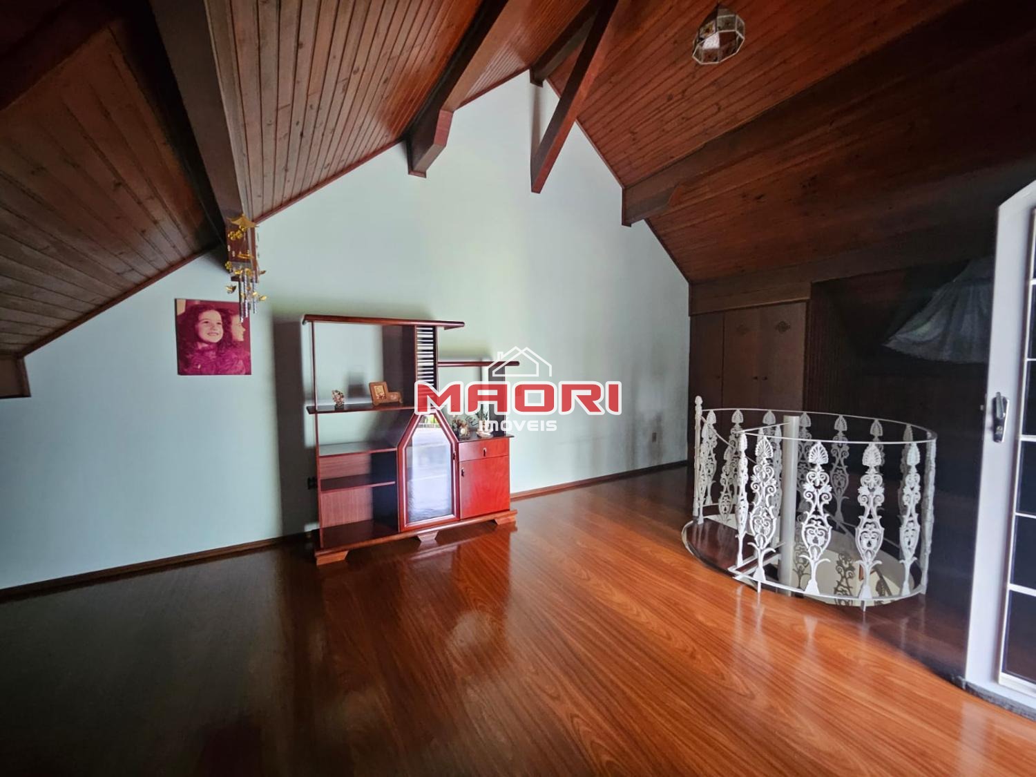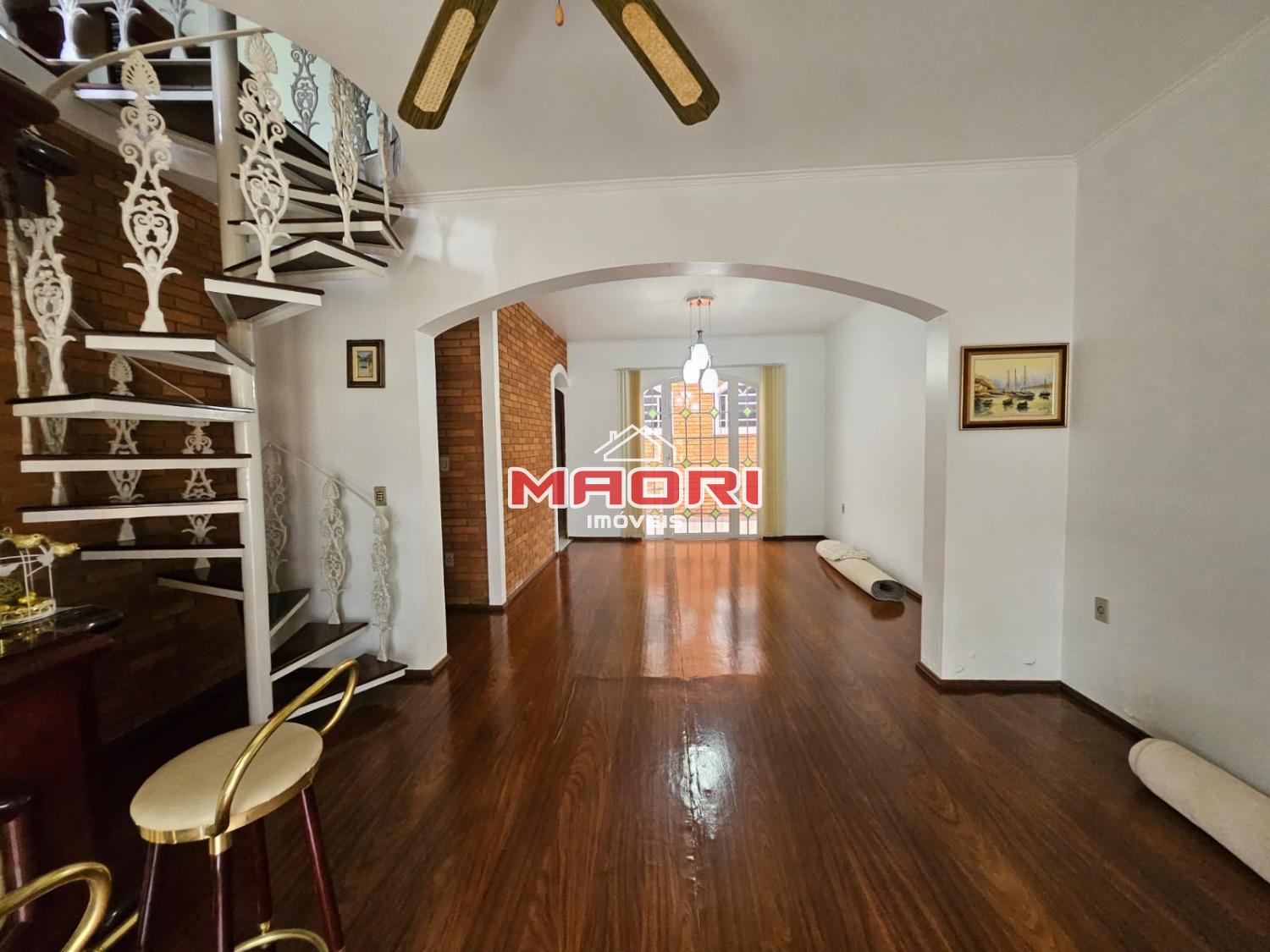 Casa principal (frente); 4 quartos, sendo 1 suíte e banheiro social, 2 quarto mais um que pode ser usado como quarto ou escritório no andar superior com acesso de escada caracol. .