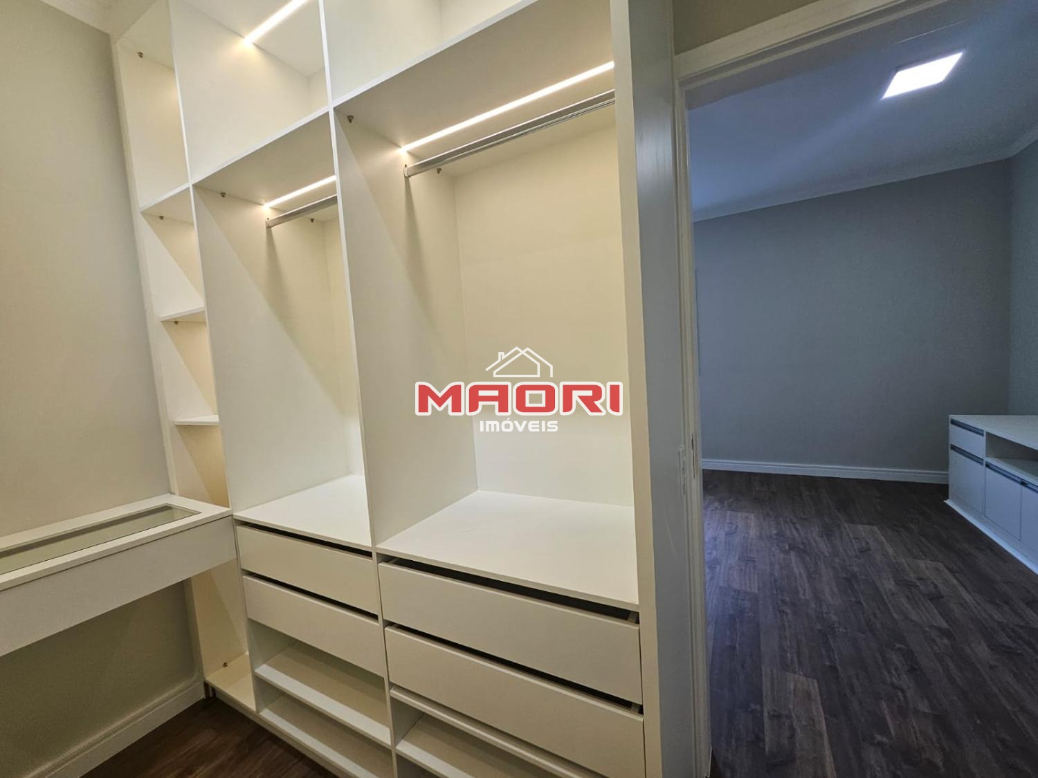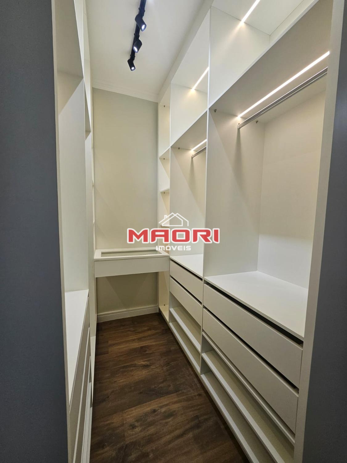 Possui 3 suítes com armários planejados, sendo a suíte máster com closet e roupeiro no corredor das suítes.