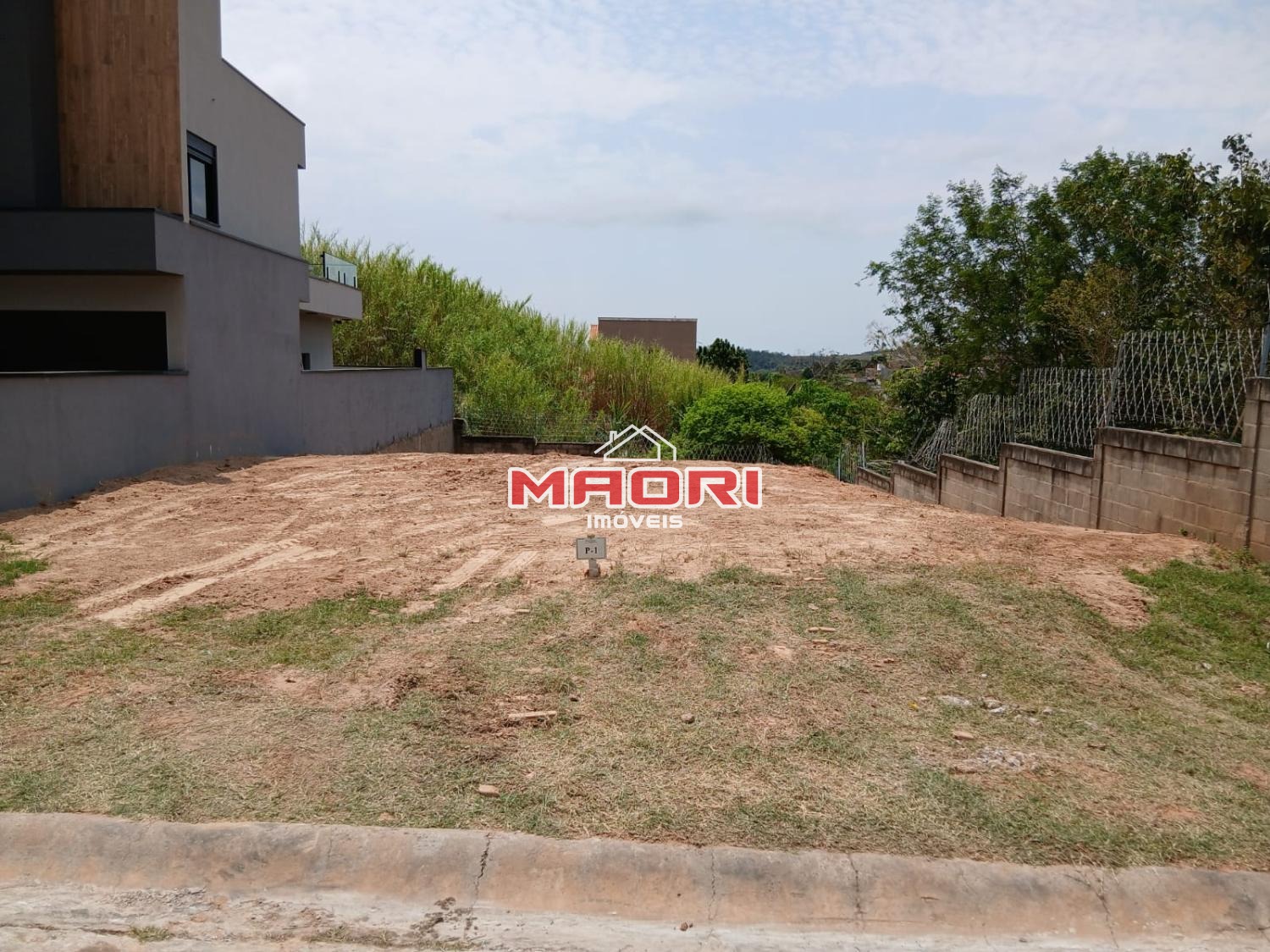 Terreno com topografia em declive, metragem de 310 m², testada de 11 metros.