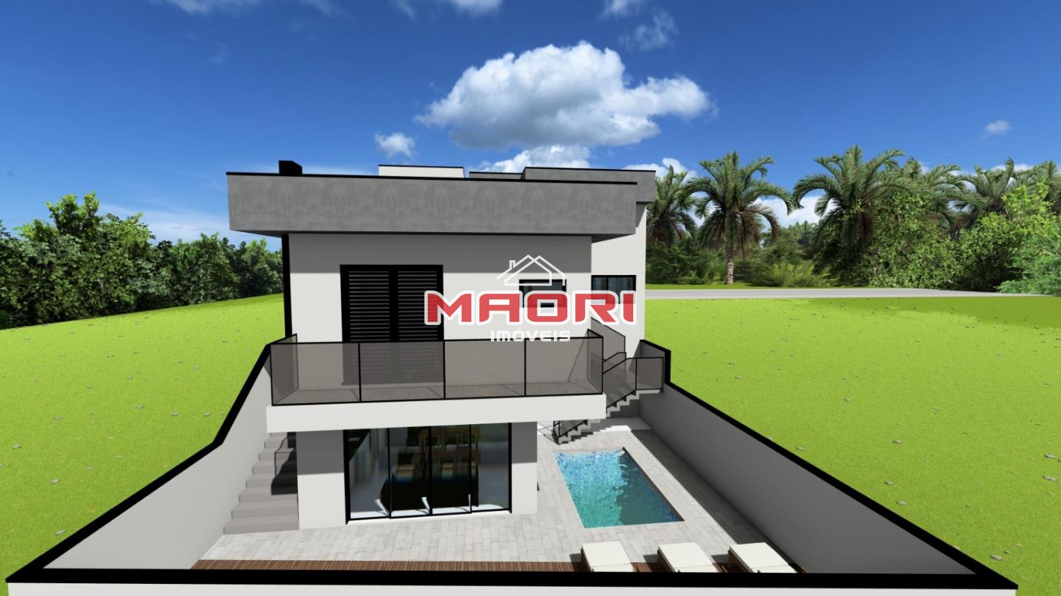 Possui projeto aprovado, casa de 225m², com 3 suítes, salas, espaço gourmet e piscina.